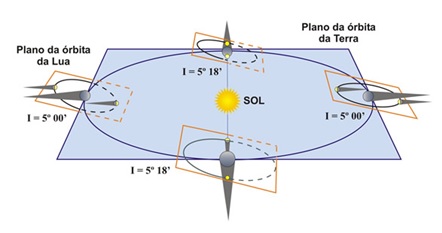 Devemos esclarecer que a Lua orbita a Terra num plano inclinado em cinco graus em relação ao plano da órbita da Terra. Somente quando a Lua passa pelo nodo orbital, que é um ponto em que os dois planos se encontram, é possível haver um eclipse solar, se coincidir com a Lua nova, ou lunar se coincidir com a Lua cheia.
