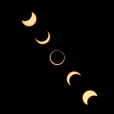 Sequência de fotos de um eclipse anular.